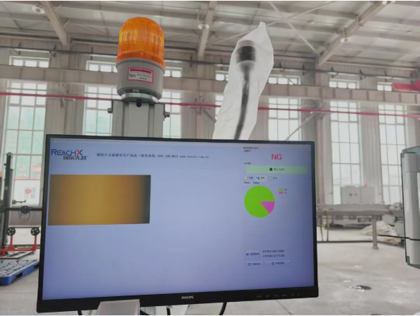 视觉检测显示屏 异常报警:一旦系统检测到打孔过程中出现异常(如打孔异常等),会立即触发报警机制: 视觉检测显示屏幕会显示清晰的报警信息; 视觉检测显示屏上方的报警灯会同步闪烁,发出视觉警示。 及时响应:操作人员一旦发现报警信号(屏幕提示或灯光闪烁),必须立即停止操作并前往检查! 检查重点:确认当前打孔位置是否符合工艺标准,排查设备是否存在异常状态。 屏幕是生命线